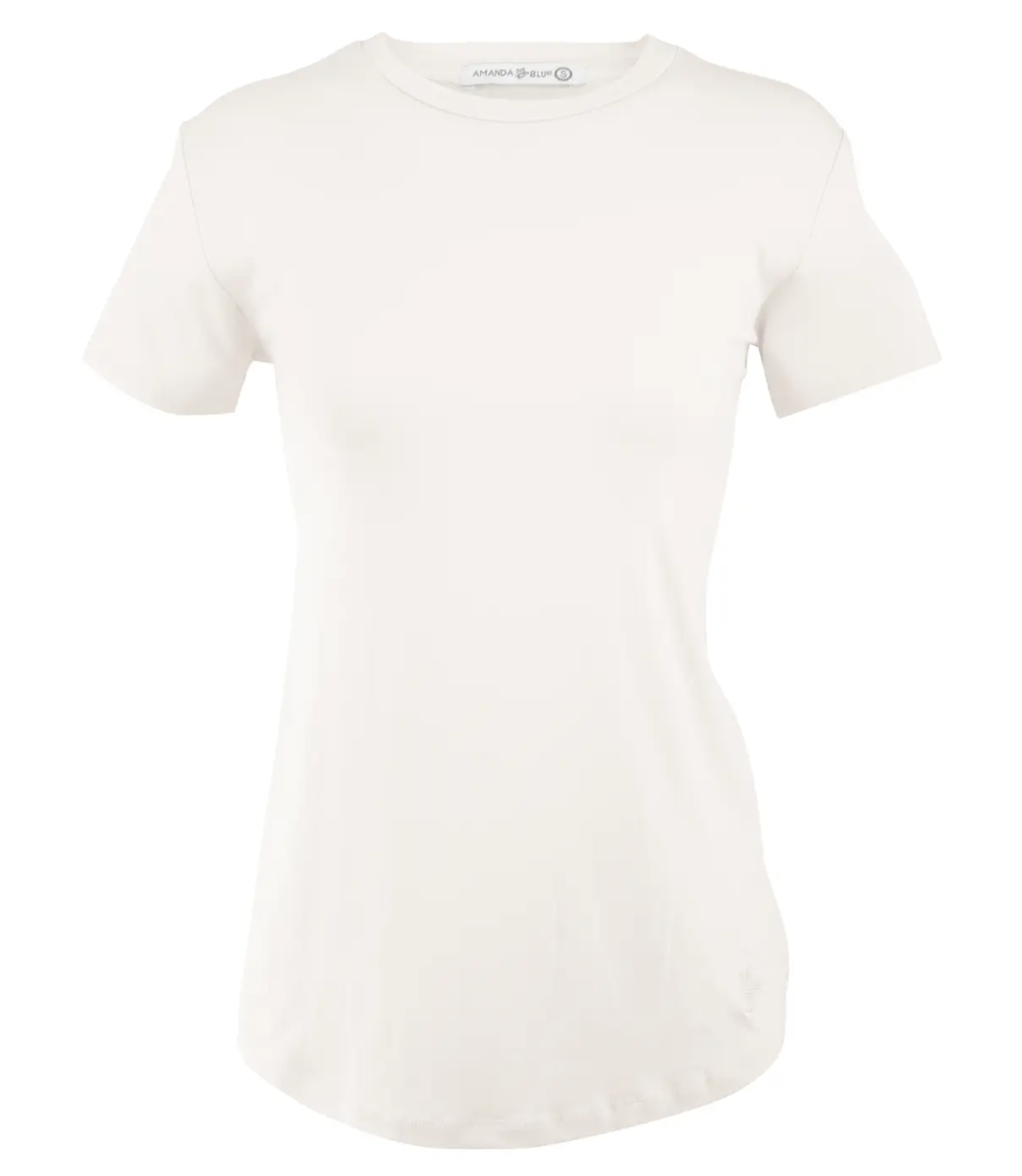 Amanda Blu’s solid short sleeve luxe tees are made from a buttery-soft rayon blend and add a touch of style to any outfit.